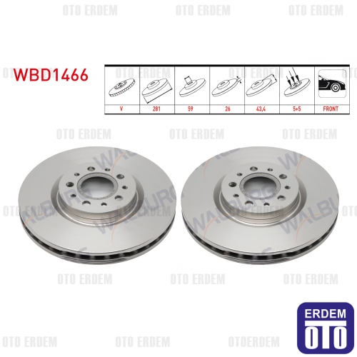 Teknik bilgiler: Havalı tip fren diski, 5 bijon, ölçüler 281x26 mm, göbek çapı 59 mm, yükseklik 43,4 mm’dir.